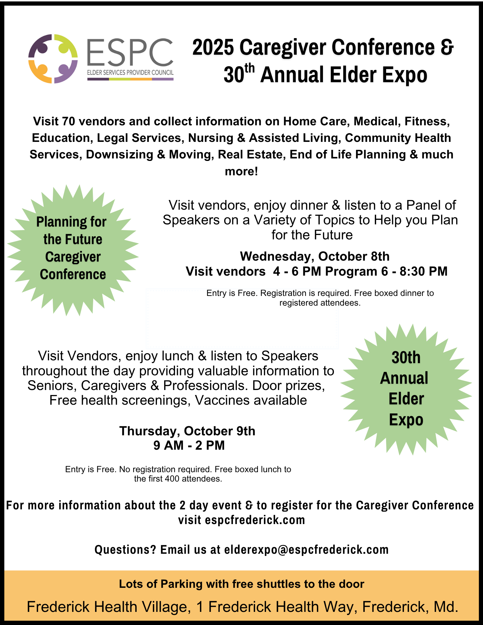Questions? Email us at: elderexpo@espcfrederick.com