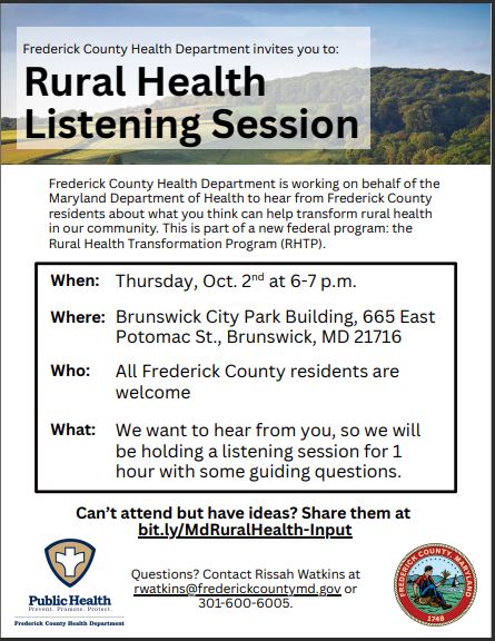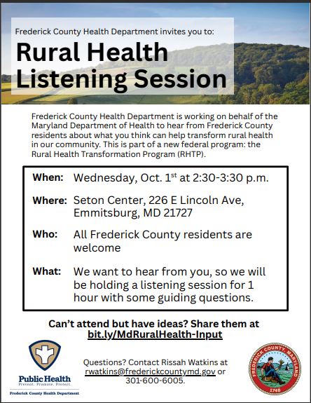 Frederick Health Village 1 Frederick Health Way, Frederick, MarylandThe Community Health Needs Assessment (CHNA) Public Input Session, hosted in partnership with the Frederick County Health Department, Frederick Health, and the Coalition for a Healthier Frederick County, invites YOU to share your insights to help shape Frederick County’s health priorities over the next 3-year Local Health Improvement Process (LHIP) cycle. Refreshments and light breakfast […]